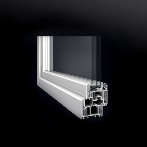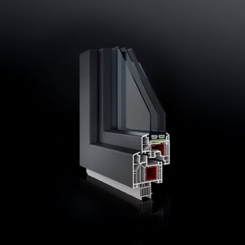 82 mm-es beépítési mélységű 6 légkamrás kemény pvc profil horganyzott idomacél merevítéssel + középtömítéssel , választható szürke vagy fekete gumitömítéssel szállítjuk.